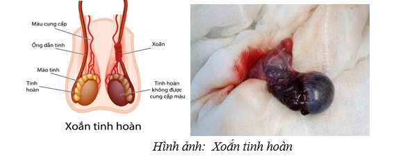 - Biểu hiện: Đau dữ dội đột ngột, tinh hoàn treo cao, buồn nôn.