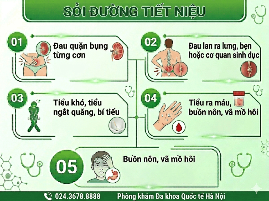 - Có thể tiểu ra máu, buồn nôn, vã mồ hôi