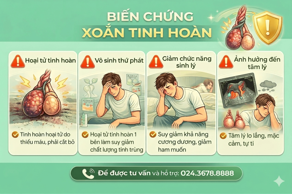 - Mất tinh hoàn vĩnh viễn, không thể phục hồi, ảnh hưởng trực tiếp đến khả năng sản xuất tinh trùng