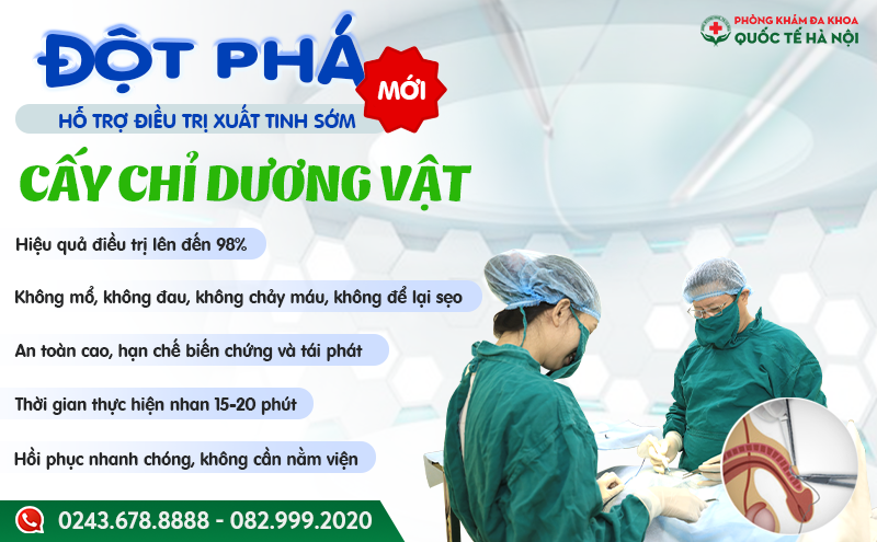 Điều trị bằng cấy chỉ dương vật: Phương pháp này áp dụng cho những nam giới bị xuất tinh sớm
