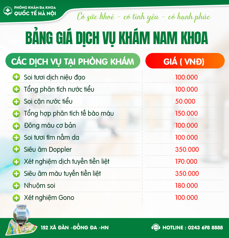 Mọi hạng mục thăm khám, xét nghiệm tại đây đều được niêm yết rõ ràng, chi tiết theo từng khoản mục. Bệnh nhân sẽ được thông báo cụ thể mức chi phí điều trị sau khi bác sĩ thăm khám chẩn đoán tình trạng bệnh.