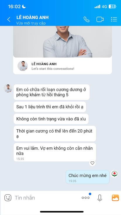 Bạn bị rối loạn cương dương, trao đổi và đặt lịch hẹn khám với bác sĩ Nam học TẠI ĐÂY đồng thời nhận mã ưu đãi khám chức năng sinh lý nam chỉ với 288K.