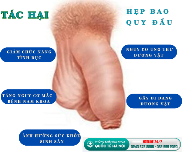 Bao quy đầu bị hẹp khiến dương vật bị cong vẹo, dị dạng, phát triển không đạt được kích thước như bình thường.