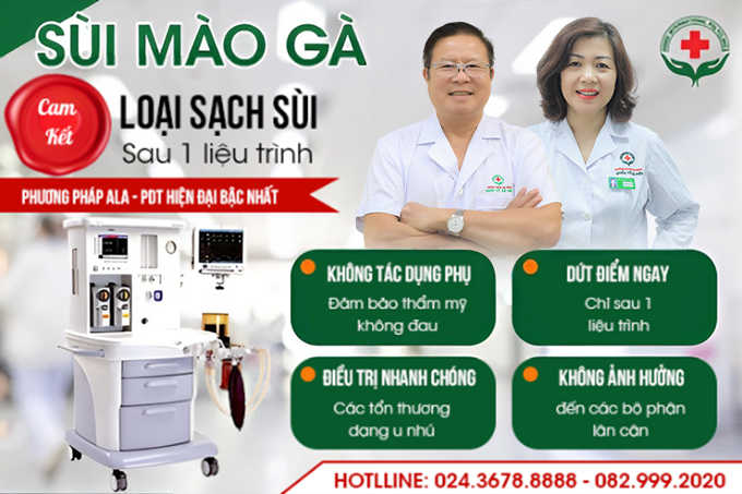 Sùi mào gà: điều trị bằng phương pháp sóng cao tần ALA – PDT thế hệ 3, phá hủy, tiêu diệt virus gây bệnh, loại bỏ nhanh các triệu chứng mà không gây tổn hại đến sức khỏe của người bệnh.